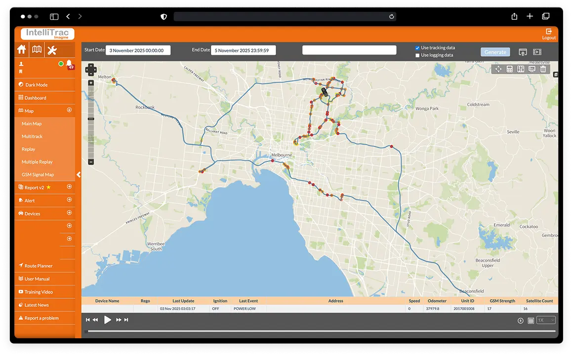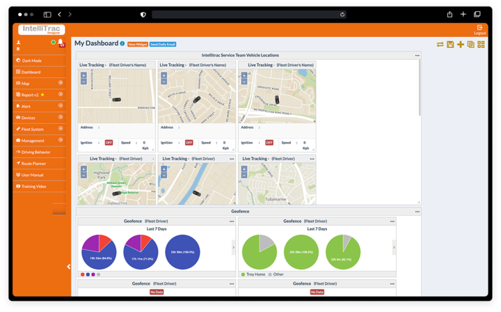 - Live tracking with driver behaviour insights
