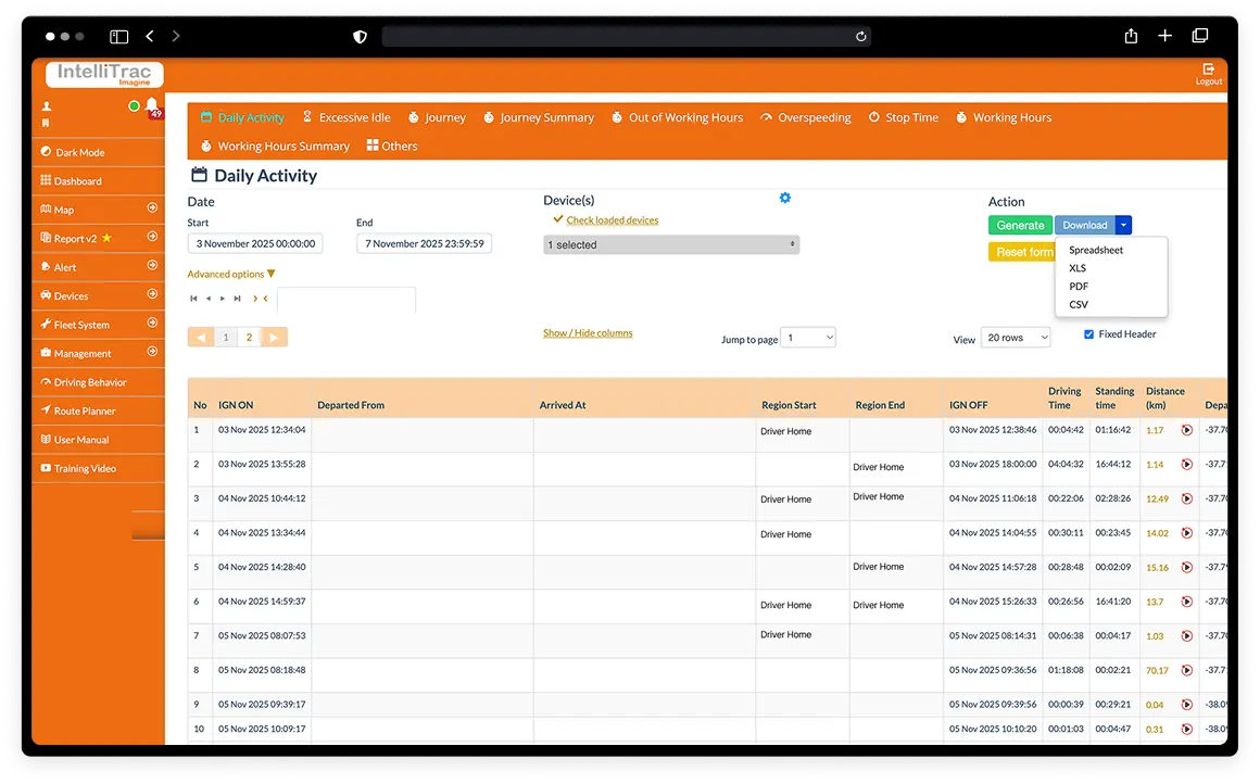 - Vehicle activity reports
